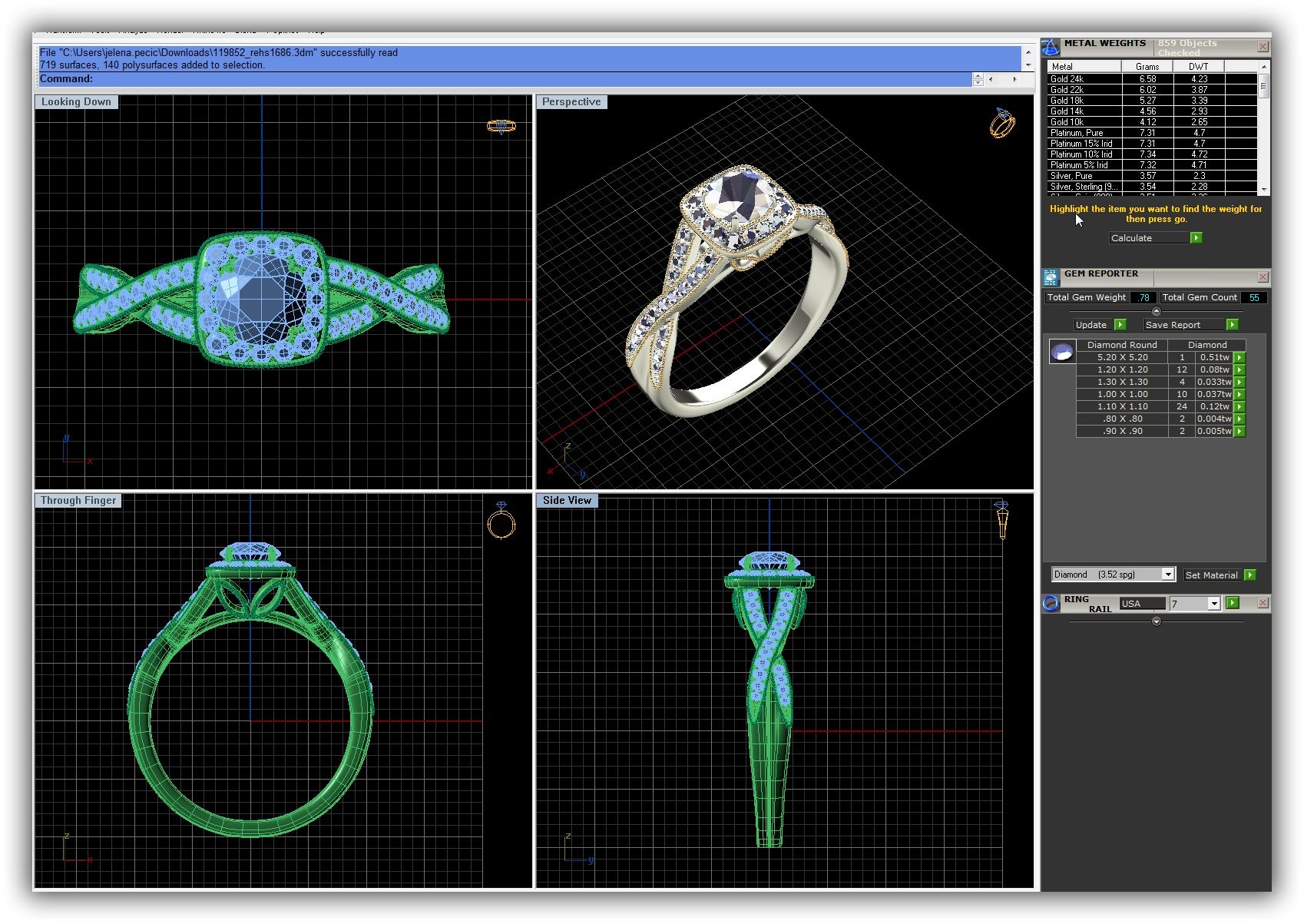 Supplied Stones 1.3MM RDX 4 1.2MM RDX 12 1.1MM RDX 24 1MM RDX 10 .90MM RDX 2 .80MM RDX 2