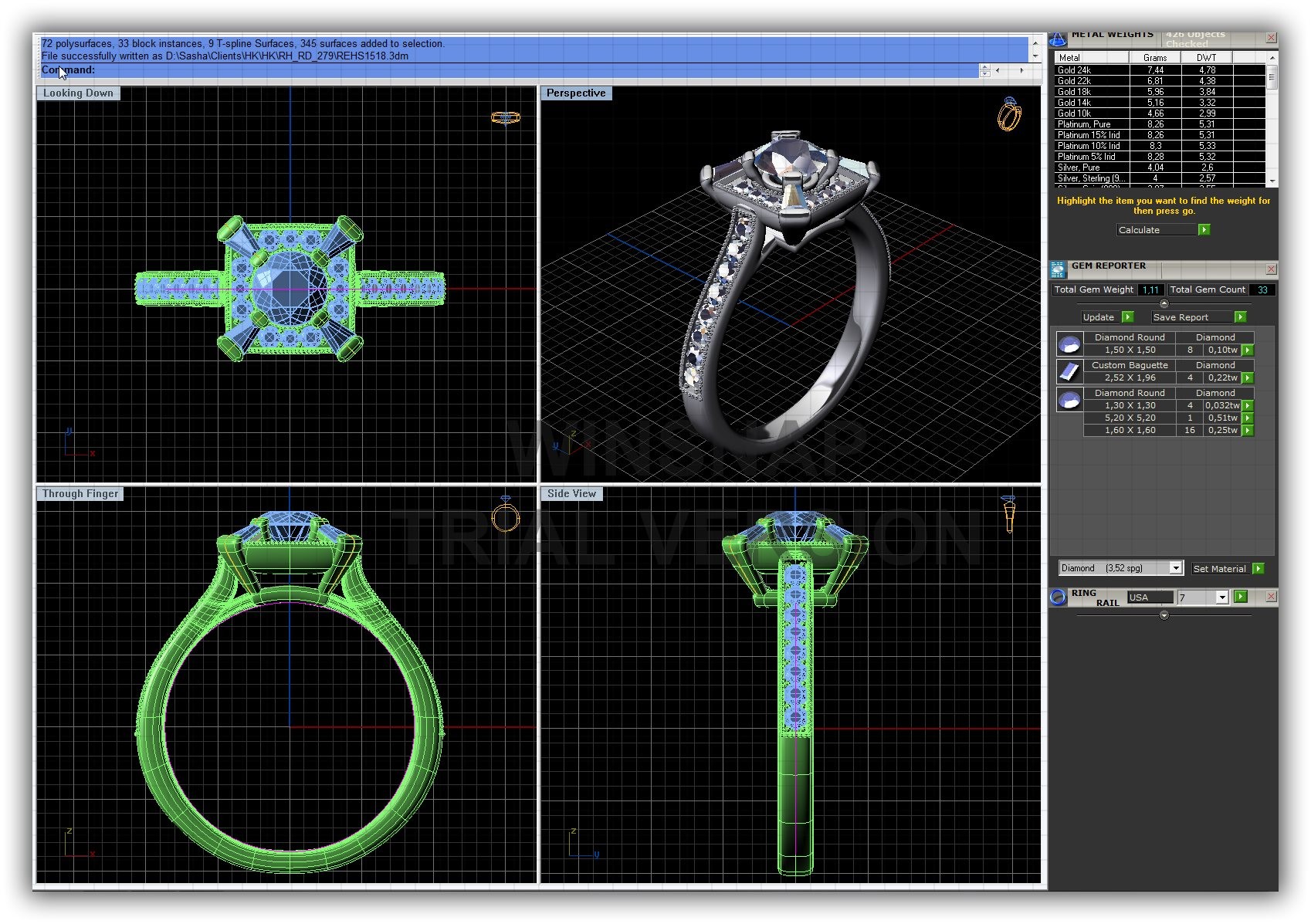 Supplied Stones 1.6MM RDX 16 1.3MM RDX 4 1.5MM RDX 8 2.52MM X 1.96MM BGSX 4